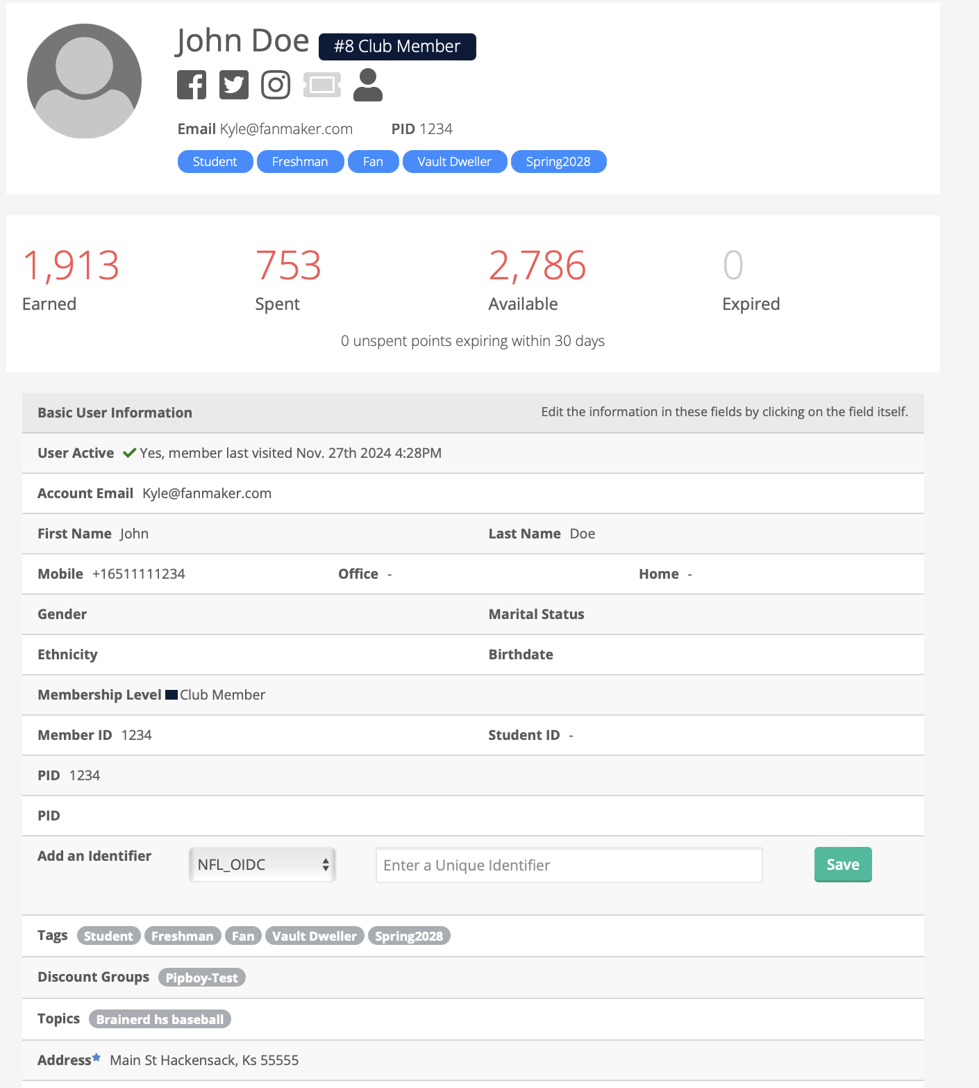 The member profile is where you will find all of the information regarding an individual member’s account. Information includes: