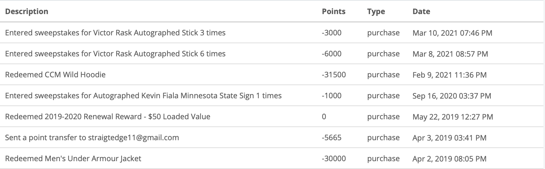 Points used to enter sweepstakes - including lost sweepstakes.