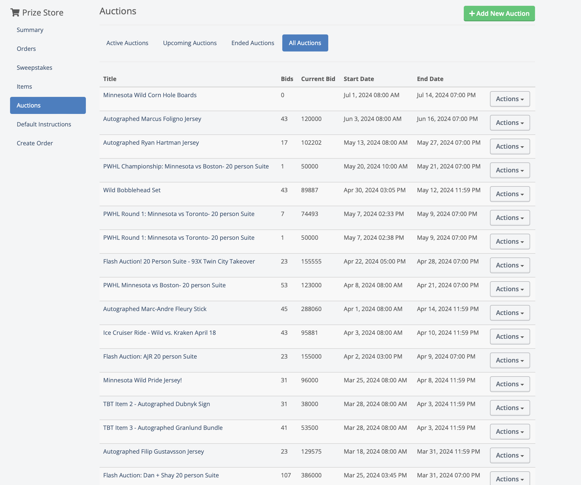 Visit the Auctions Dashboard here in the Admin