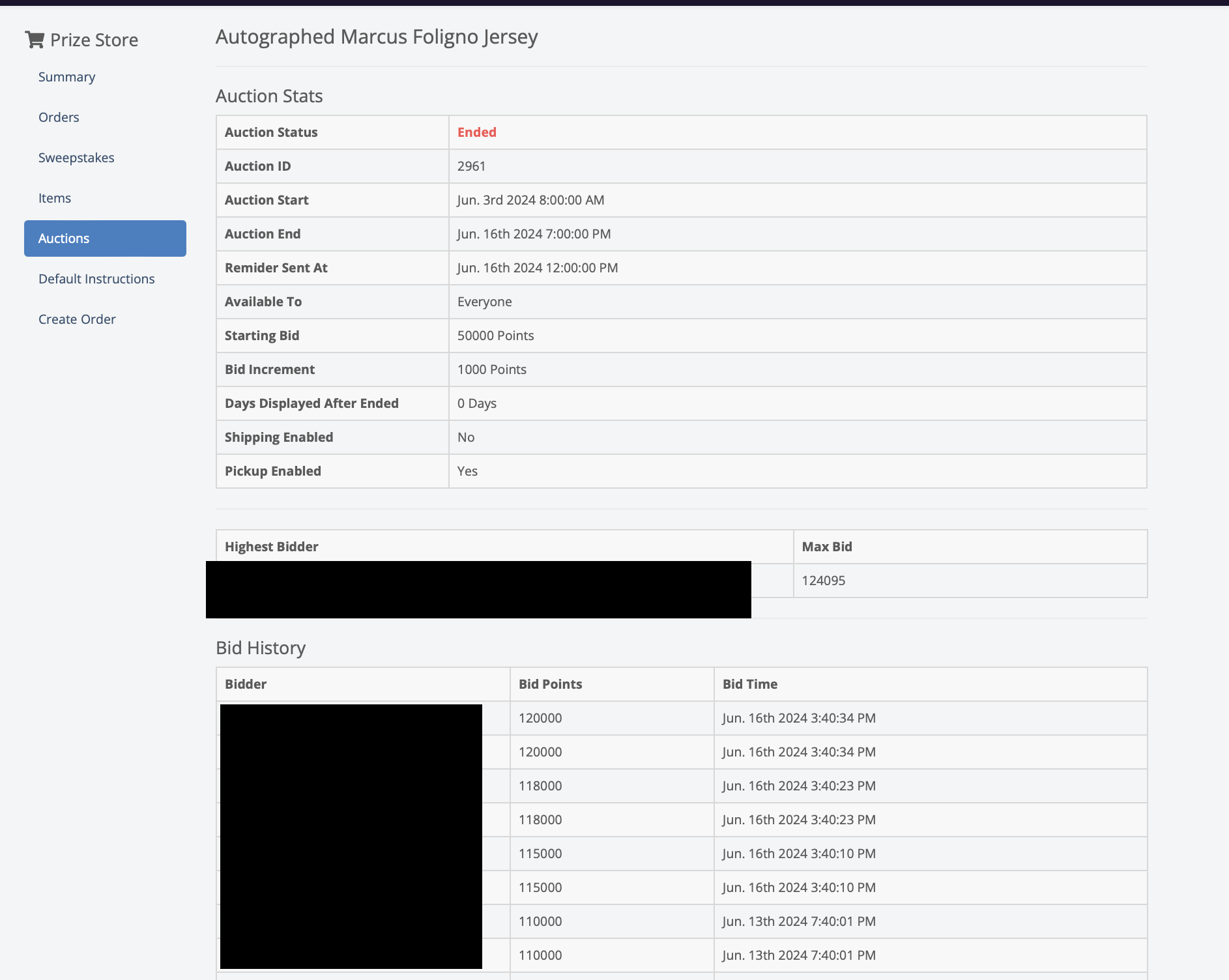 If you click on the title of an auction you can see more information about the auction. See the screenshot below. This will show all bidders and their bids. It's an easy way for you to troubleshoot or look into things if you get any questions from your users.