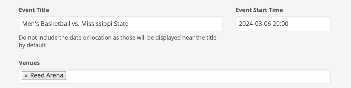 Event Start Time: Will be brought in with the listed start time in SIDEARM