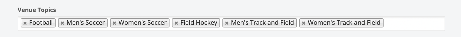 In order for the SIDEARM sync to bring in the proper check-in venue with your event, make sure you assign the correct Venue Topic. The venue topic should be gender specific so be sure to mention if your men's or women's team plays at this venue.