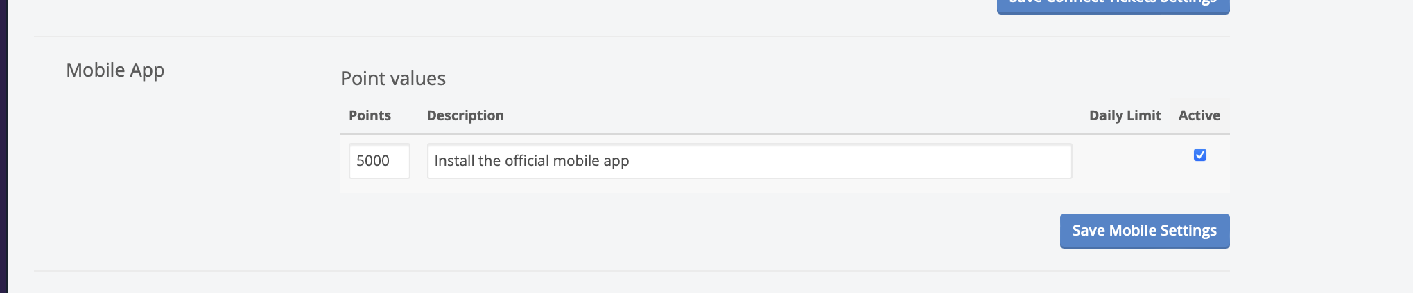 Check “Active.” To enable this preference. If you prefer not to award points for downloading the mobile app, you would simply disable or uncheck the “Active” button.