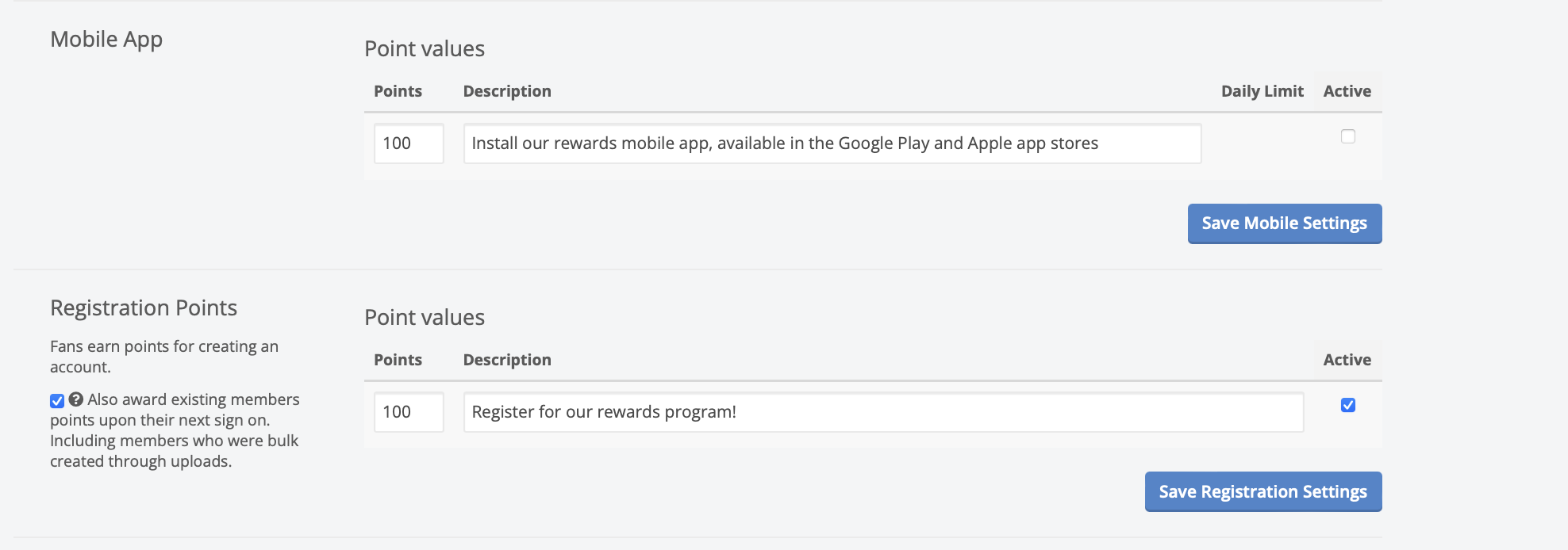 There is also a check mark to enable or disable for members to receive registration points on their next login for any members that are imported into the system. We recommend this always gets checked if your program awards points for registration.