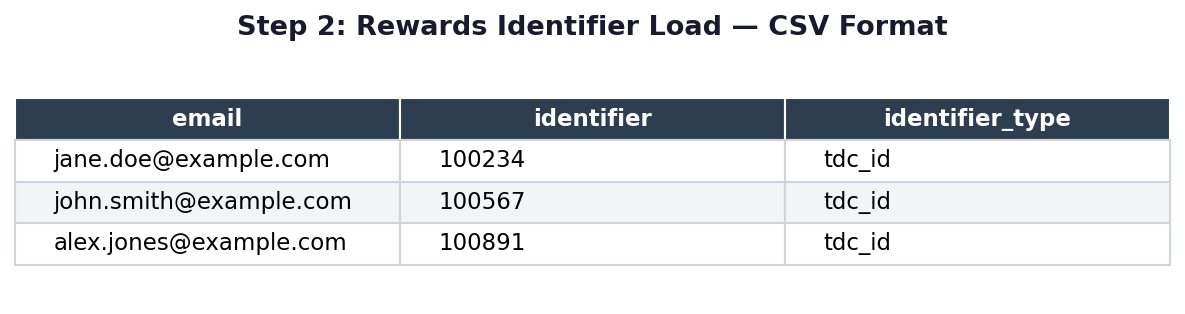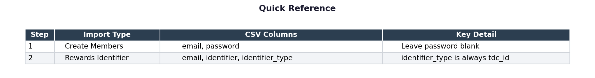 This guide walks you through how to load TDC users into Fanmaker and associate their TDC IDs. The process involves two imports: a Create Members Load to add users to the portal, followed by a Rewards Identifier Load to link each user to their TDC ID.