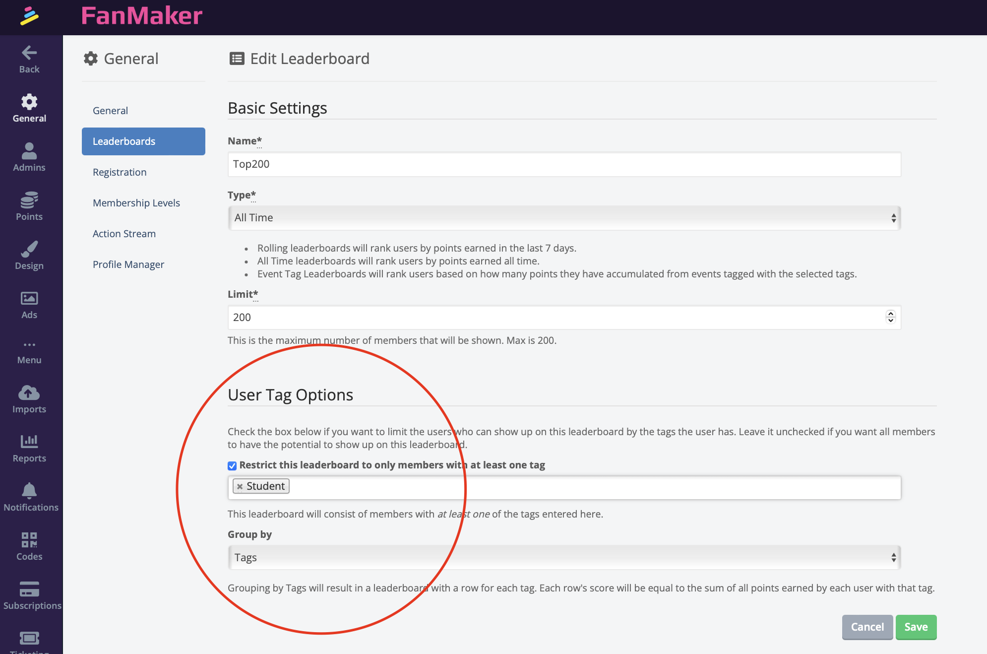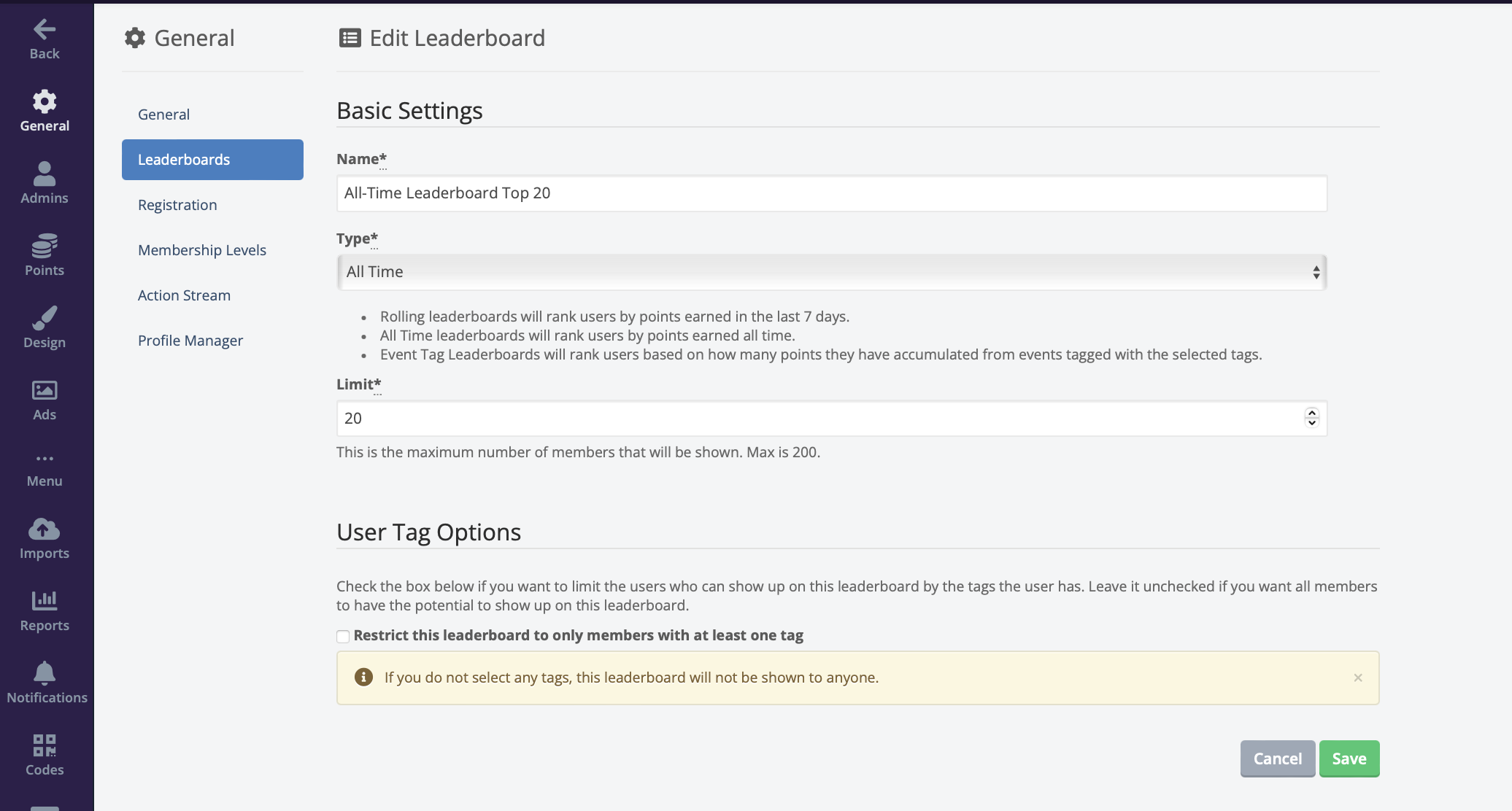 User Tag Options is a great way to create multiple leaderboards for segments of your members.
