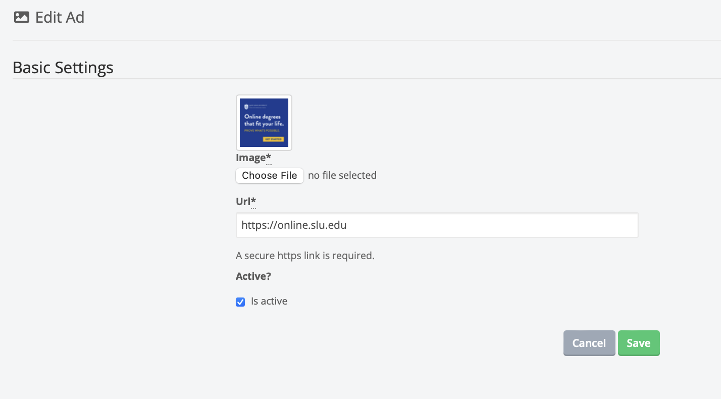 This doesn’t have to be an advertisement that someone is paying you for. It could simply be a graphic to send members to your social media channels, or an on sale date, or anything that you would like to insert into the homepage.
