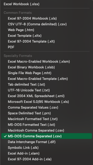 Please save your .csv files using the MS-DOS Comma Separated value option for best import results!